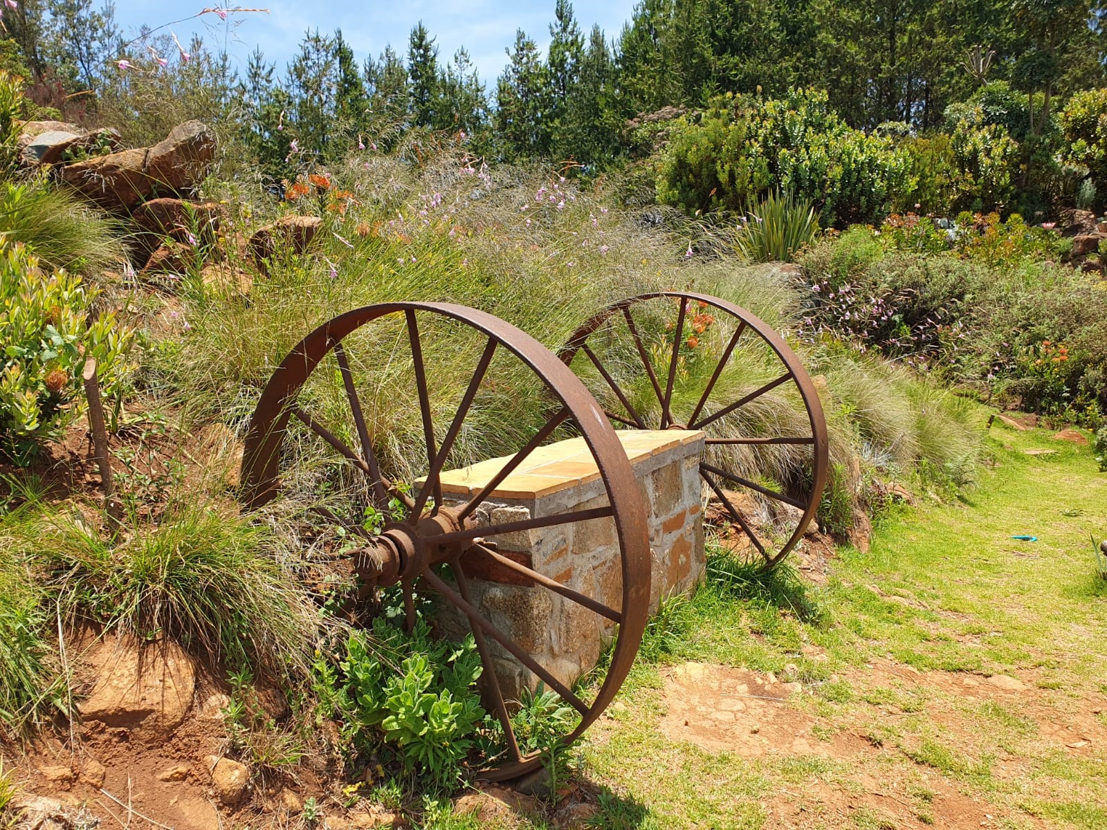She ignited a special relationship with the famous Kirstenbosh Botanical Gardens in South Africa which led to them donating protea seedlings. Gill designed and made ‘The Protea Garden’ for the precious seedlings and over the years it became well established and is enjoyed by all the visitors: human and bird life at the site.