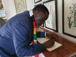 His Excellency the President, of the Republic of Zimbabwe Dr. Emmerson Mnangagwa signing the Visitor’s Book at World’s View